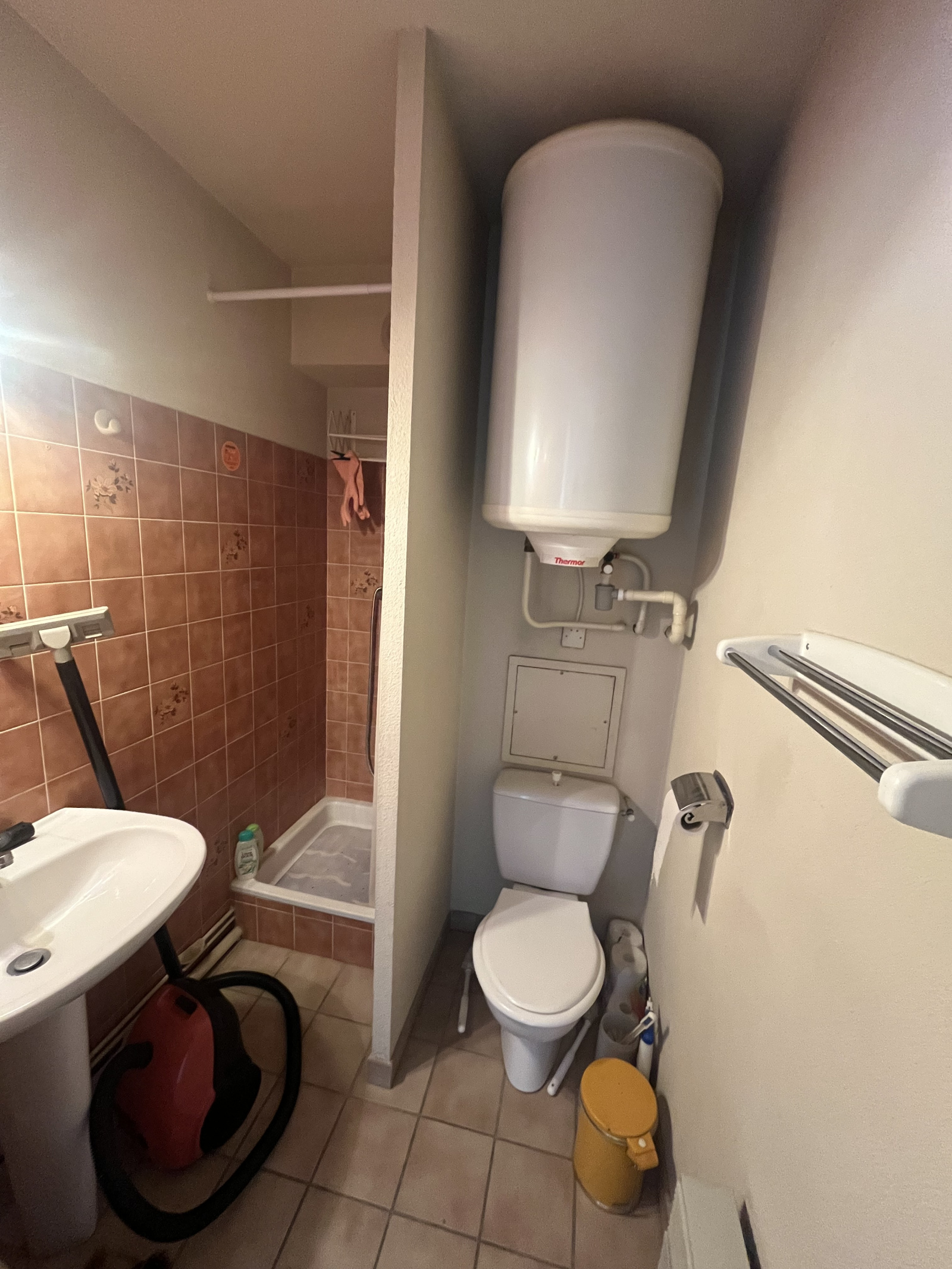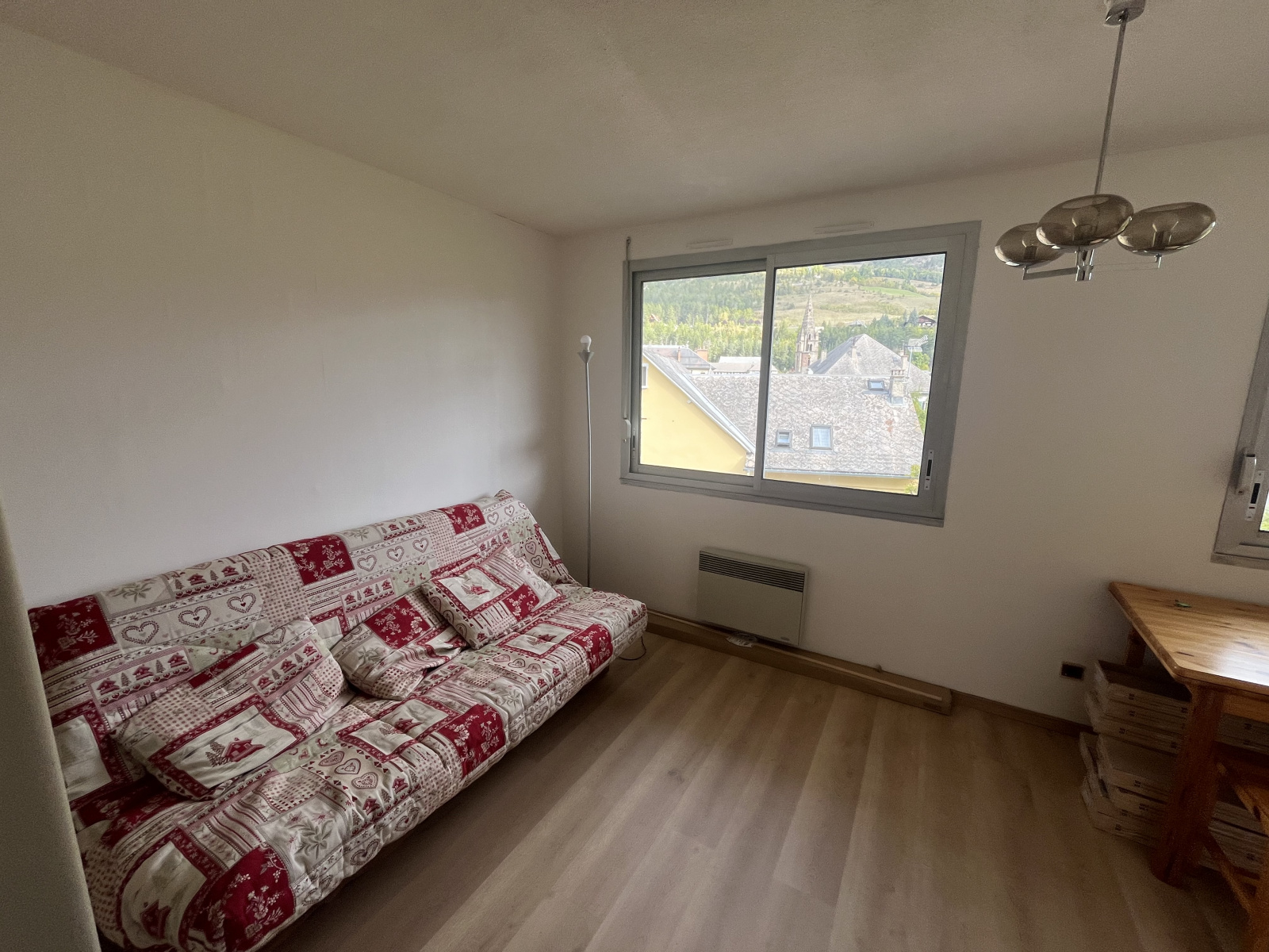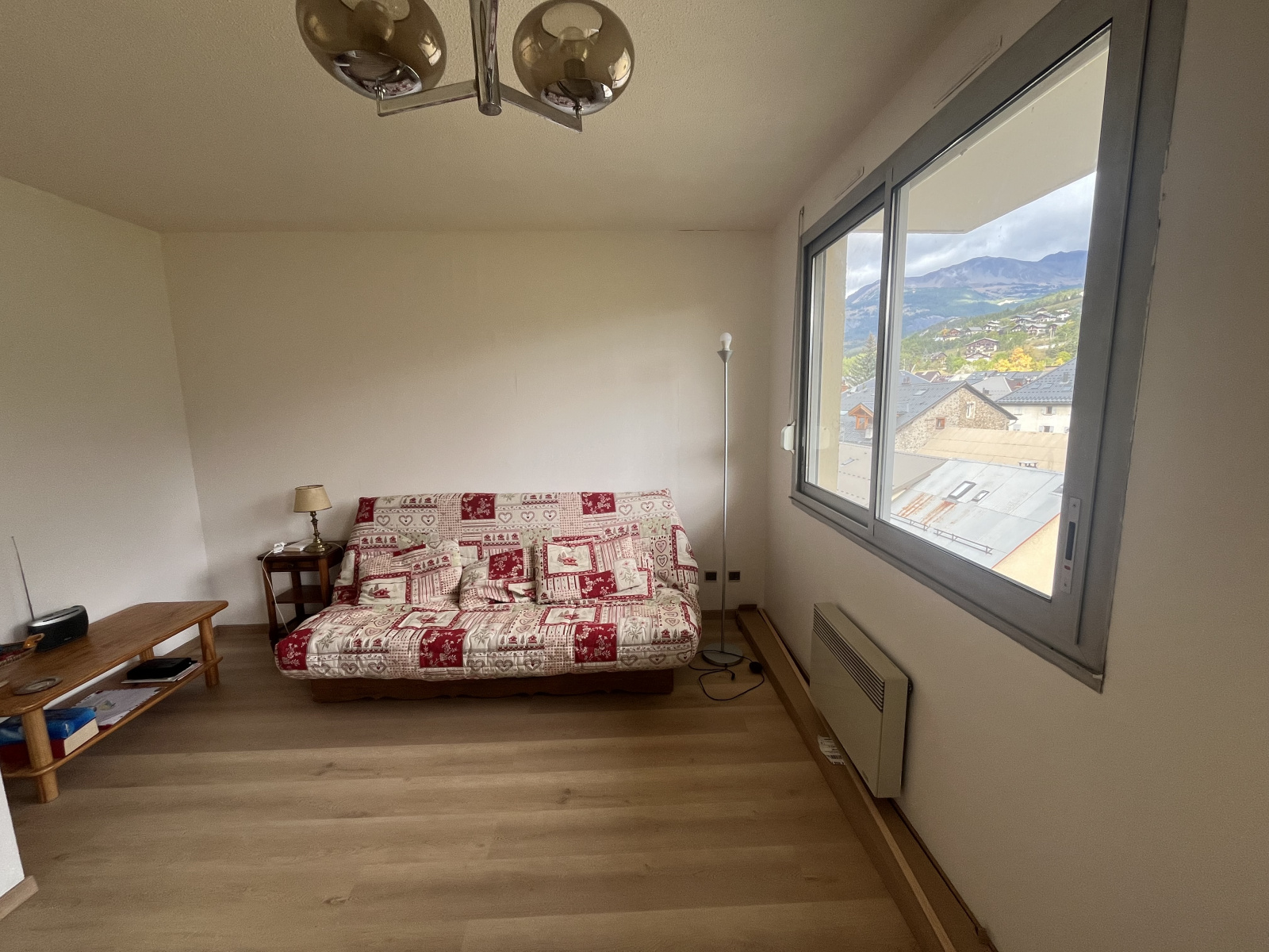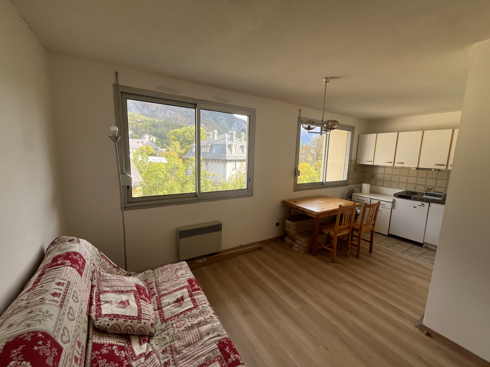 Studio composé d'une entrée sur petit sas, une salle d'eau, un séjour avec coin cuisine , belle vue sur les montagnes