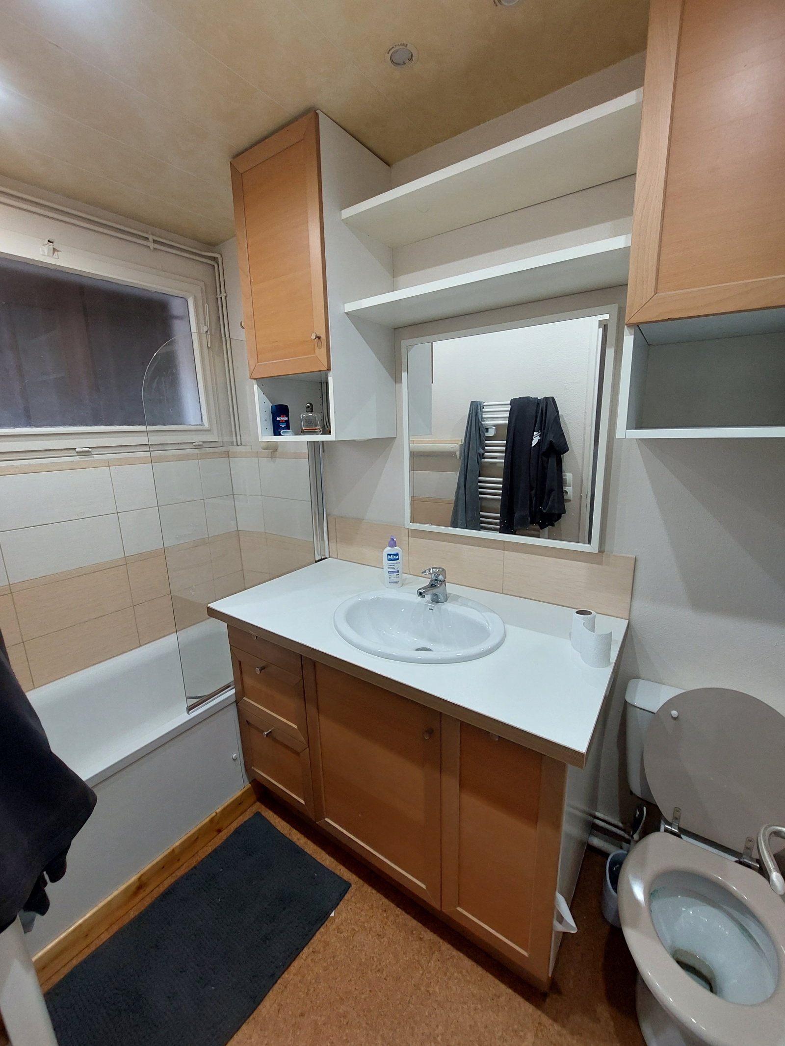 Studio de 33m² exposé SUD. Il se compose d'une entrée avec coin nuit, une salle de bain avec wc, un coin rangement, un séjour avec coin cuisine. Pas de travaux à prévoir. Parking privé au sein de la copropriété.