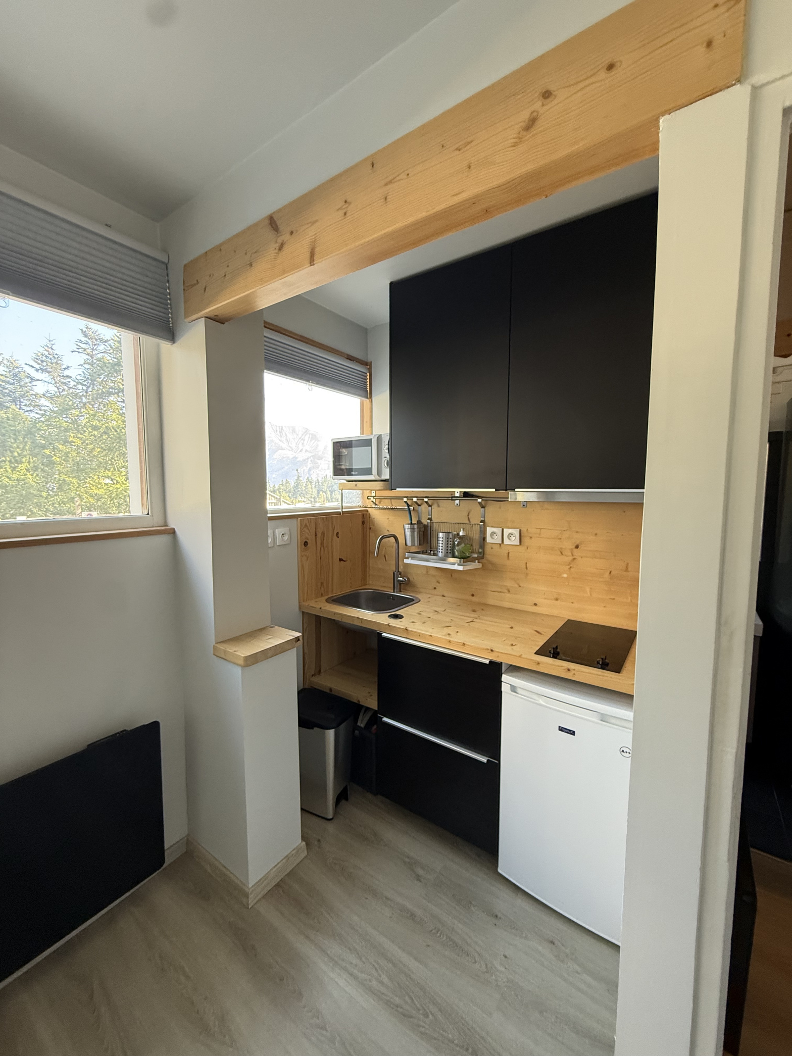 Il se compose d'une entrée sur coin montagne , une salle d'eau , un séjour avec coin cuisine équipé , un espace de rangement